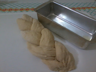 | Modele os pães em formato de trança.(sempre polvilhando farinha de trigo para não grudar nas mãos ) |